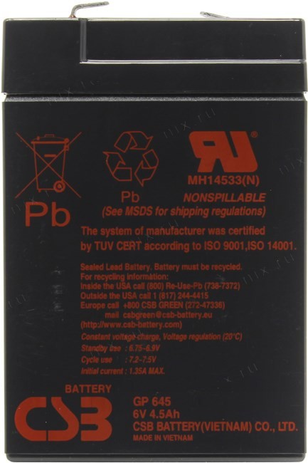 70 х 108 х 48 мм (6В, 4.5/5 Ач)