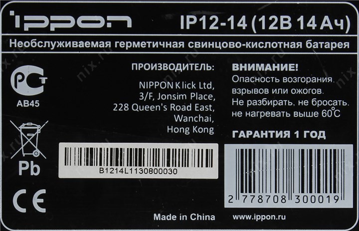12 В/14 Ач