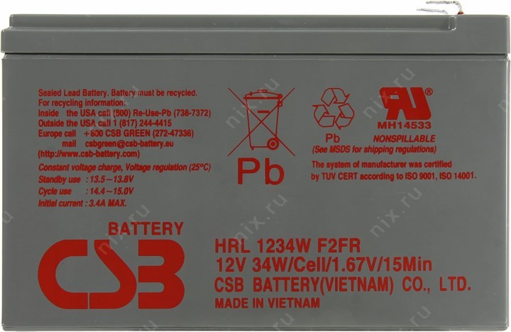 Ресурс: До 260 перезарядок при 100% разрядке; Срок службы: 8 лет в буферном режиме