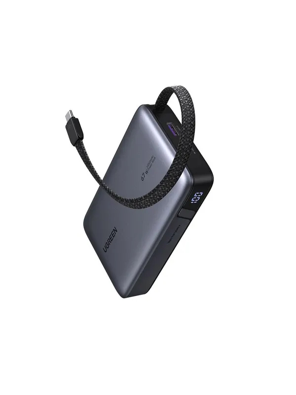 Портативный аккумулятор Ugreen PB550 20000 mah , серый, со встроенным кабелем (ССС), 85166B