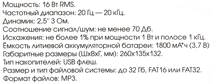 Дополнительно: Поддерживаемые тип и размер файловой системы USB накопителя - FAT16 или FAT32 до 32 Гб, Встроенный FM-радиоприемник