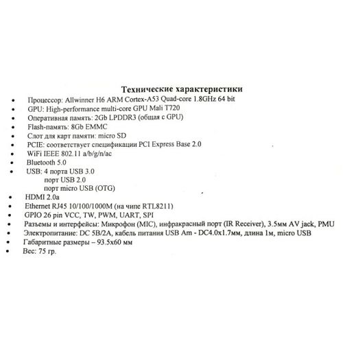 Процессор компьютера: Allwinner H6 Cortex A53 (1.8 ГГц)