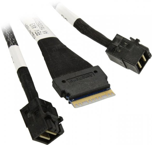 Slimline SAS x8 разъём может быть у контроллеров, материнских плат, mini SAS HD разъём может быть у объединительных панелей серверных платформ, корзин для жёстких дисков с возможностью горячей замены.