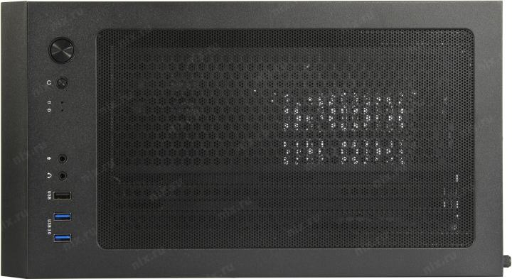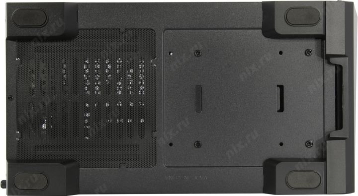 Снизу, с забором воздуха через фильтр снаружи корпуса, что обеспечивает лучшее охлаждение в системе и малошумность.