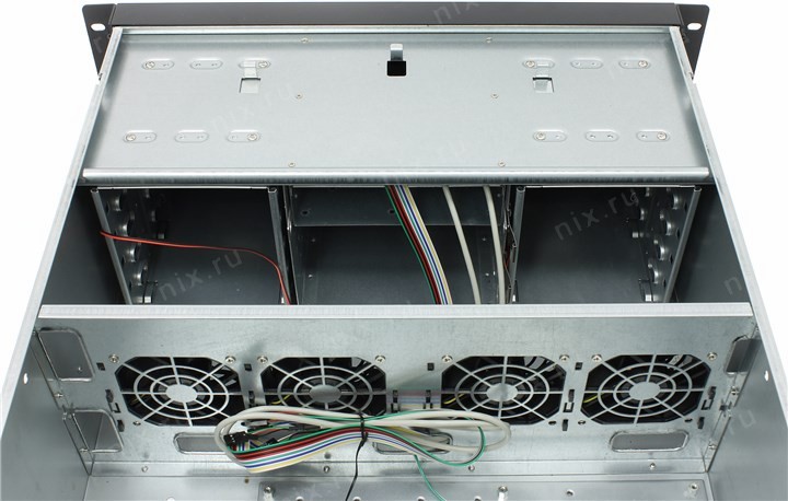 8 вентиляторов:120 x 120, 80 x 80 мм (2x 120 мм на передней, 2x 80 мм задней панели, 4x 80 мм в центре корпуса)