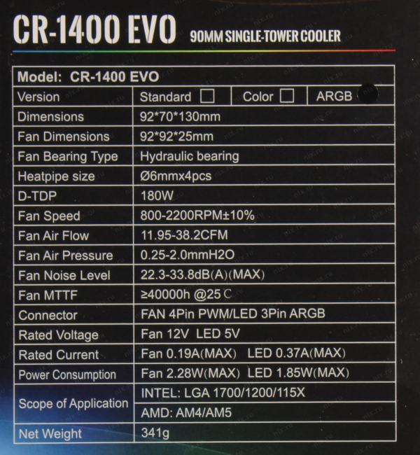 Совместимость охлаждения: Socket LGA1700, Socket LGA1200, Socket LGA1151, Socket LGA1150, Socket LGA1155, Socket LGA1156, Socket AM5, Socket AM4