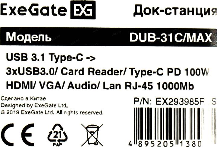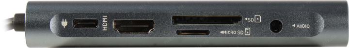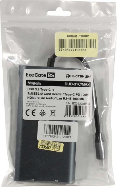 Разъемы кабеля или переходника: VGA "мама", HDMI 19F, mini Jack 3.5 mm "мама", USB Type C "папа", USB Type C "мама", 3 x USB Type A "мама", RJ-45