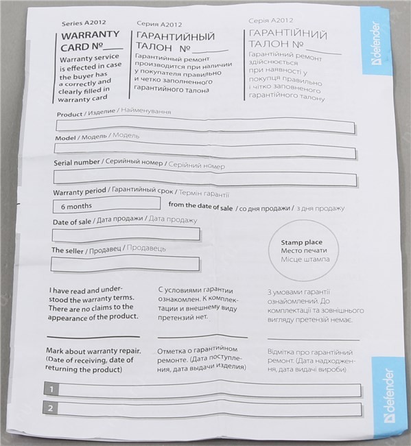 Комплект поставки
