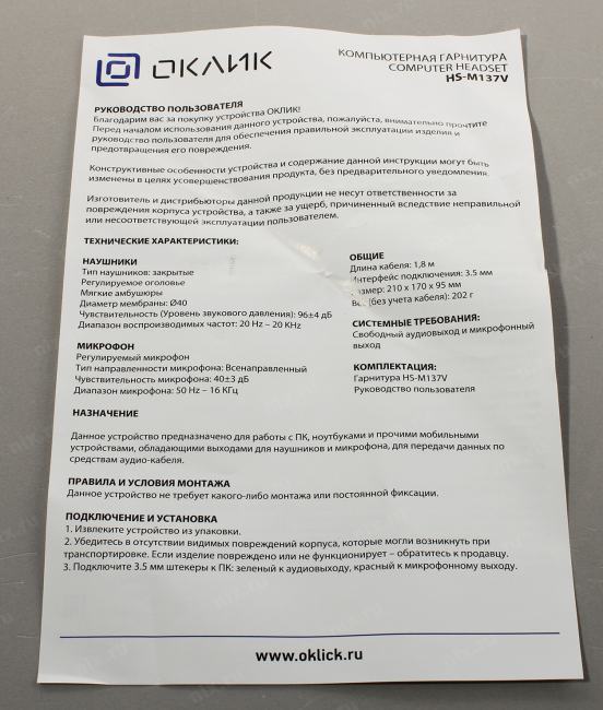 Наушники, документация