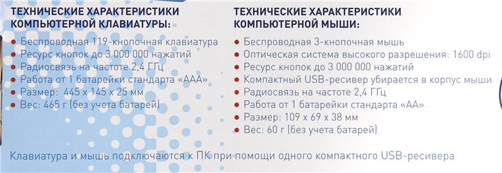 1 батарейка типа AA, 1 батарейка типа AAA, USB-приемник мышка