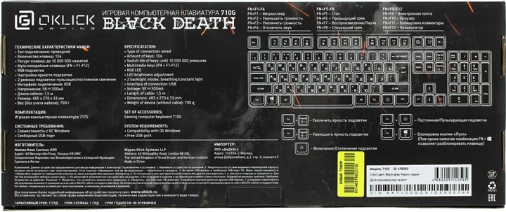 Особенности: Ресурс клавиш до 10 000 000 нажатий,