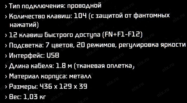 Многоцветный. Подсветка символов, 7 цветов на выбор и 20 режимов подсветки