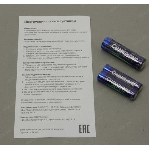 2 батарейки типа AAA, 1 батарейка типа AA, USB-приемник, USB-удлинитель