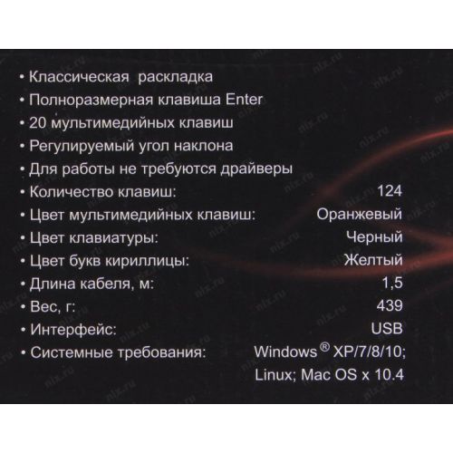 Дополнительные кнопки клавиатуры: Воспроизведение/Пауза, Домой, Звук -, Звук +, Звук выкл, Избранное, Калькулятор, Мой Компьютер, Обновить, Почта, Предыдущий трек, Следующий трек, Стоп; Клавиши управления компьютером: Power, Sleep