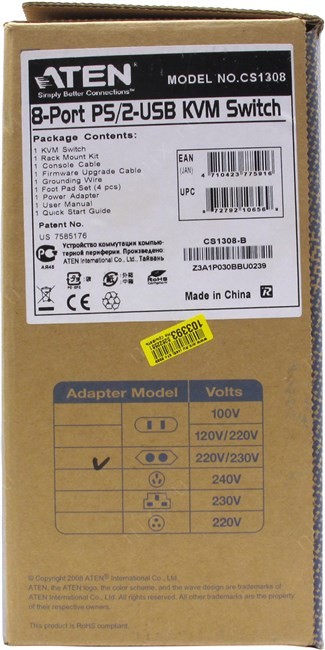 8 дополнительных KVM переключателей ATEN CS1308 могут быть соединены каскадом, обеспечивая подключение 64 компьютеров, управляемых с одной KVM консоли (клавиатуры монитора и мыши).