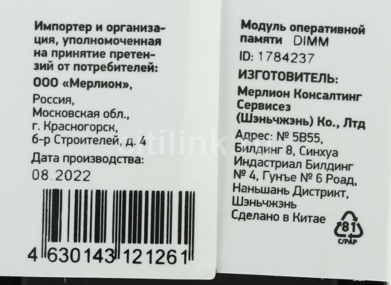 Размеры упаковки