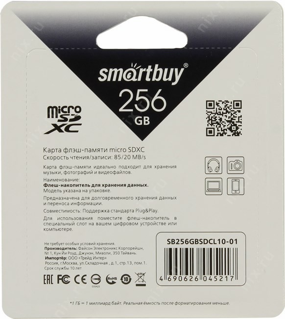 Данная карта может использоваться только в устройствах с поддержкой SDXC.