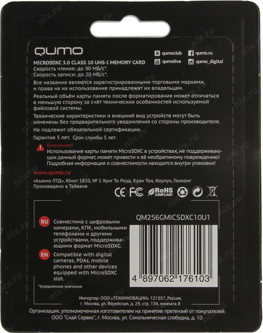 Данная карта может использоваться только в устройствах с поддержкой SDXC.