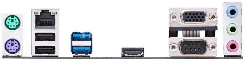 USB разъемы на задней панели: 2x USB 3.0 (USB 3.1 Gen1), 2x USB 2.0; Аудио разъемы на задней панели: Line-in, Line-out, Mic-in; Видео разъемы на задней панели: HDMI, 1 выход LVDS, 15-пиновый коннектор D-Sub; Порты: 1x LPT (внутренний коннектор), 1x COM, 1x COM (внутренний коннектор), 1x RJ-45 LAN