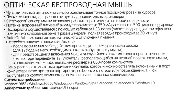 USB-приемник, USB кабель для зарядки встроенного аккумулятора