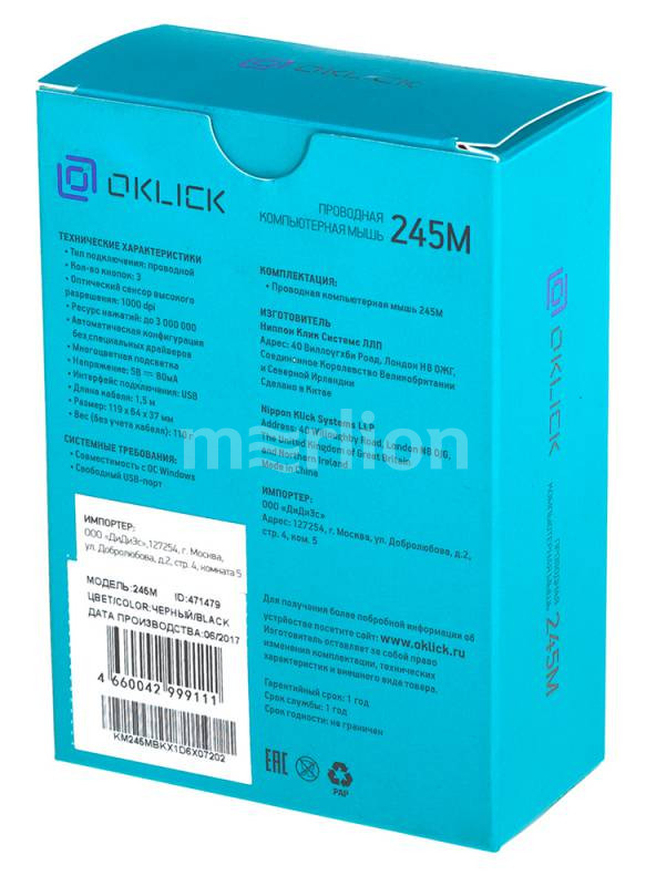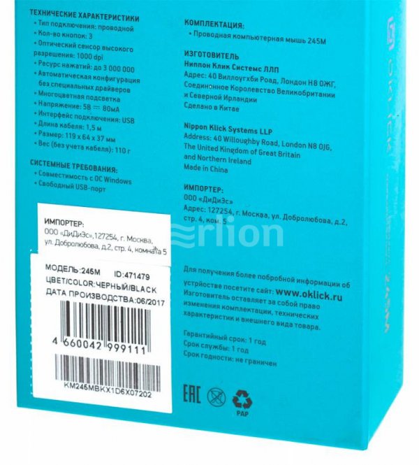 Многоцветная подсветка, Ресурс до 3 000 000 нажатий, длина провода - 1.5 м
