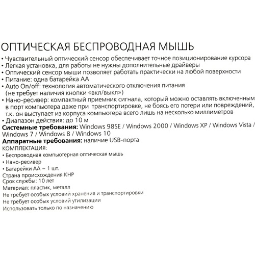 1 батарейка типа AA, USB-приемник