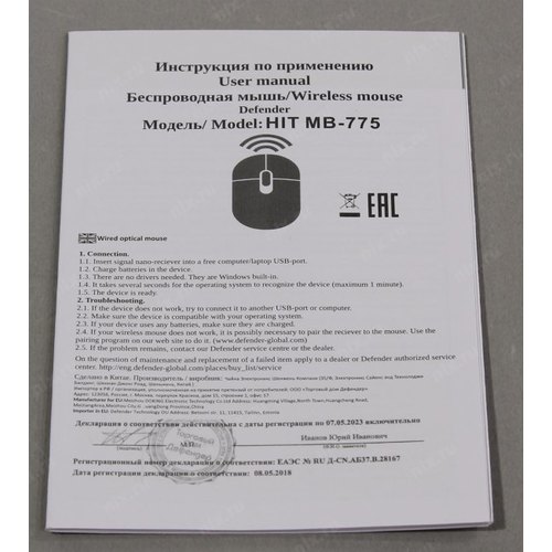 Радиус действия мыши