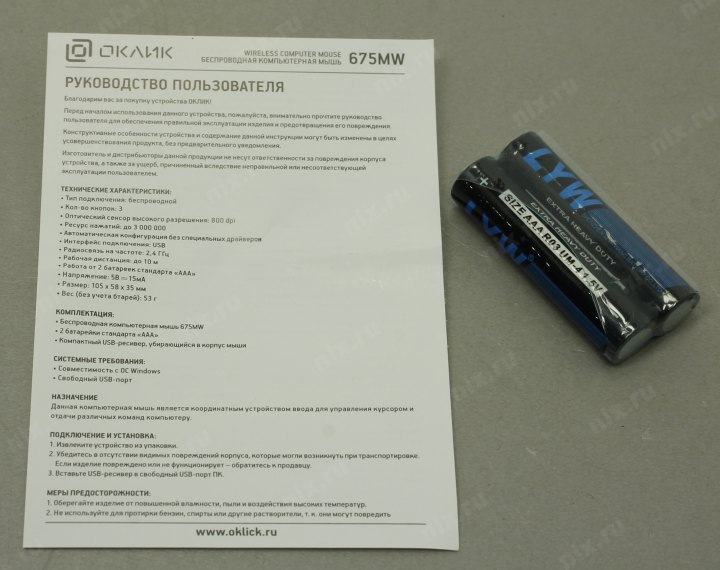 2 батарейки типа AAA, USB-приемник