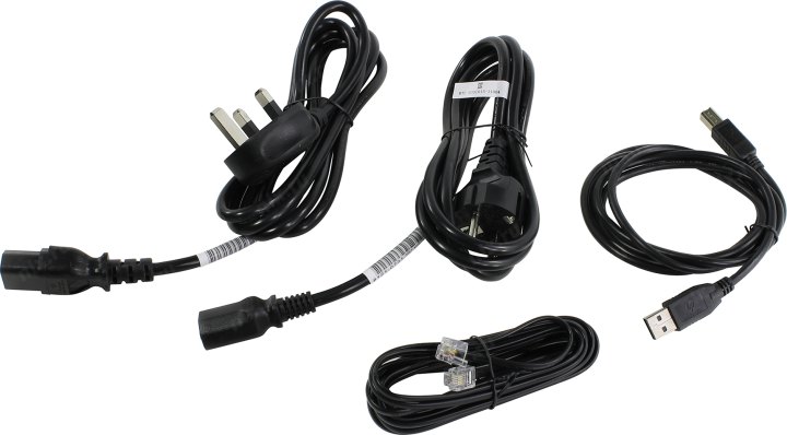 Кабель питания, пробные цветные картриджи, телефонный шнур, черный картридж, кабель USB