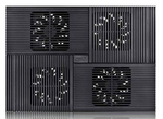 Дополнительно: Эргономичный дизайн с двумя углами наклона; Дополнительные возможности: Четыре вентилятора – четыре направления, Подставка изготовлена из четырех листов алюминия с черным анодированным покрытием, Вертикальный воздушный поток, Два USB-порта, Максимальный воздушный поток 53.4CFM, Уровень шума 23dB