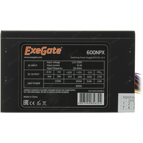 +3.3V - 30A, +5V - 18A, +12V1 - 22A, +12V2 - 20A, +5VSB - 2.5A, -12V - 0.3A ; Комбинированная нагрузка: +3.3V & +5V - 150 Вт, +12V1 & +12V2 - 450 Вт