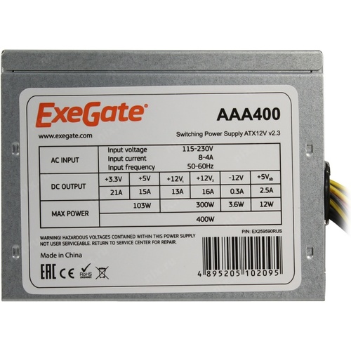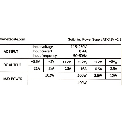+3.3V - 21A, +5V - 15A, +12V1 - 13A, +12V2 - 16A, +5VSB - 2.5A, -12V - 0.3A ; Комбинированная нагрузка: +3.3V & +5V - 103 Вт, +12V1 & +12V2 - 300 Вт