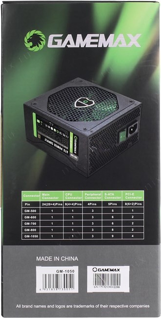 4x 6/8-pin разъема (разборный 8-pin коннектор, 2-pin отстегивается)