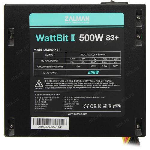 +3.3V - 16A, +5V - 15A, +12V -37.5A, +5VSB - 2.0A, -12V - 0.3A ; Комбинированная нагрузка: +3.3V & +5V - 110 Вт