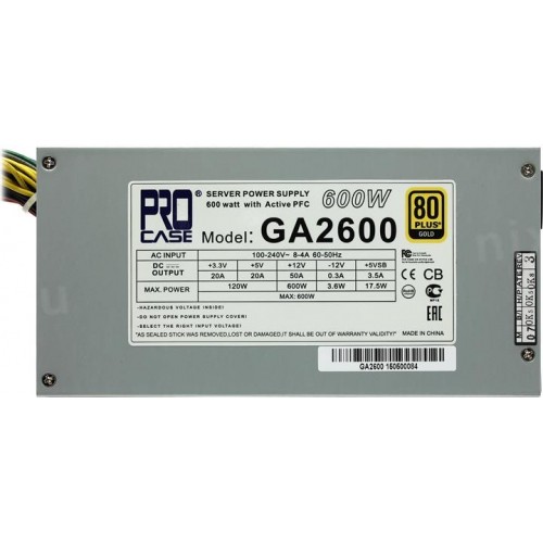 +3.3V - 20A, +5V - 20A, +12V - 50A, -12V - 0.3A, +5VSB - 3.5A ; Комбинированная нагрузка: +3.3V & +5V - 120 Вт