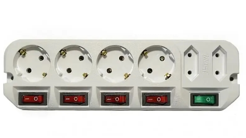 У каждой из четырех евророзеток имеется мощный (16A) индивидуальный выключатель, который обеспечивает удобство обращения с электропитанием и экономит Ваше время. Две узкие розетки имеют общий выключатель.