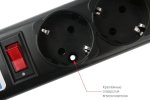 5 розеток с заземлением. Однополюсный выключатель со световой индикацией. Автоматический, многоразовый предохранитель. Защита от импульсных помех и короткого замыкания. Материал корпуса соответствует требованиям пожаробезопасности. Отверстия для крепежа.