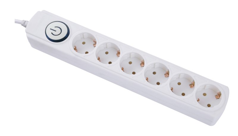 6 евророзеток с заземлением. Входная вилка Schuko. Защита от перегрузки. Защита от импульсов высокого напряжения. Защита от перетирания провода в месте входа в корпус фильтра. Ударопрочный негорючий корпус. Кнопка питания с индикатором сети.