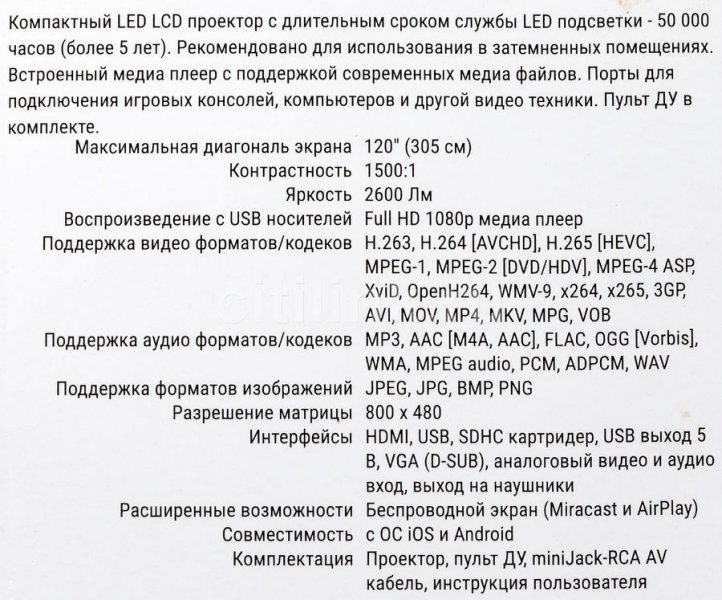 Встроенный медиа плеер, с поддержкой современных кодеков AVCHD (H.264) и HEVC (H.265). Встроенный Wi-Fi и функция беспроводного экрана для Android и iOS устройств