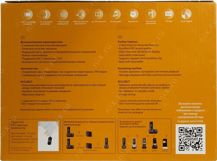 ЖК-дисплей телефона DECT: 1.8" (4.6 см); с подсветкой; Разрешение дисплея телефона DECT: 160 x 128 пикселов; Цветной дисплей: 64K цветов