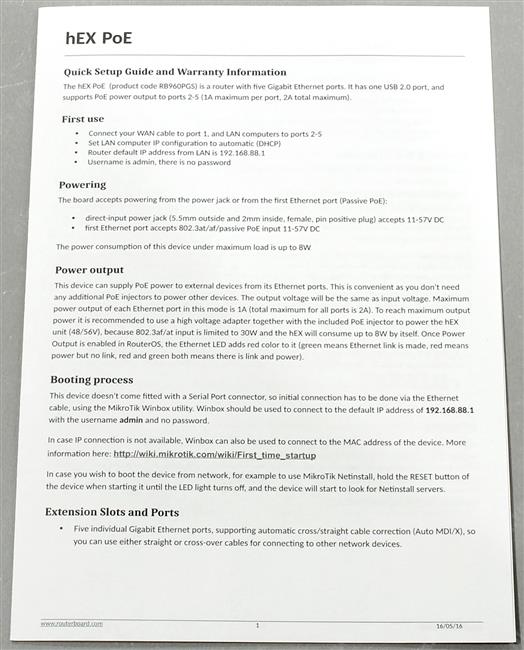 WEB-интерфейс управления: ДА; Защита от атак Denial-of-service (DoS): ДА; Особенности: 5x Gigabit Ethernet with PoE output for four ports, SFP, USB, 800MHz CPU, 128MB RAM, RouterOS L4; Поддержка UPnP: ДА; Поддержка динамического DNS: ДА
