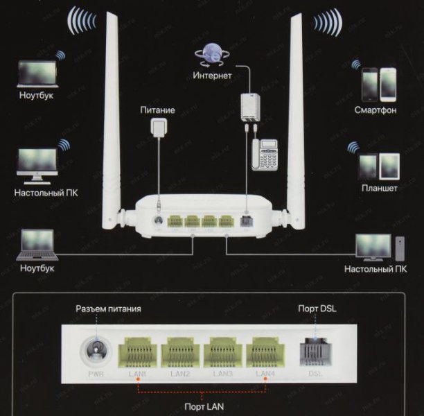 Порты Fast Ethernet: 4 порта 10/100 Мбит/сек, 1 из них разделяемый с WAN; Порты RJ-11/12: 1 порт RJ-11; Порты WAN: 1 порт RJ-45 100 Мбит/сек, 1 порт DSL