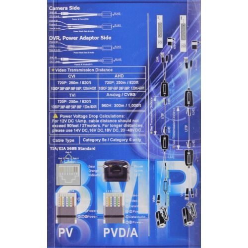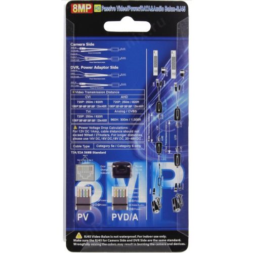 300 м (CVBS 960H), 250 м (AHD/CVI/TVI 720p), 120 м (AHD/CVI/TVI до 8 Mpx), 27 м (питание 12 В; для больших расстояний следует использовать БП с большим напряжением и приобретаемый отдельно DC/DC конвертор)