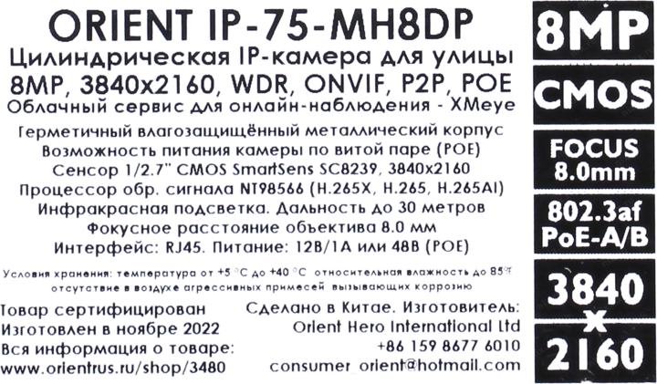 Размеры матрицы камеры: 1/2.7"; Сенсор: CMOS (SmartSens SC8239)