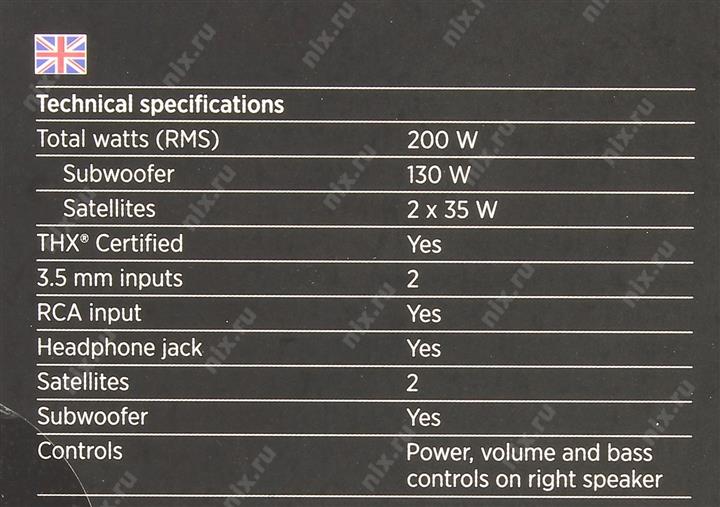 Мощность сабвуфера: 130; Фронтальные колонки (мощность одного динамика): 35