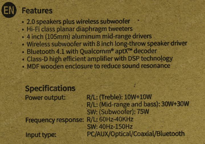 Мощность сабвуфера: 70; Фронтальные колонки (мощность одного динамика): 40