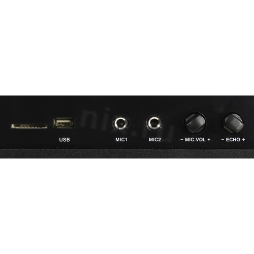 : Аудиовход 2xRCA, коаксиальный вход, оптический вход; для подключения сателлитов: RCA; на передней панели: 2 разъема для подключения микрофонов, USB Type A