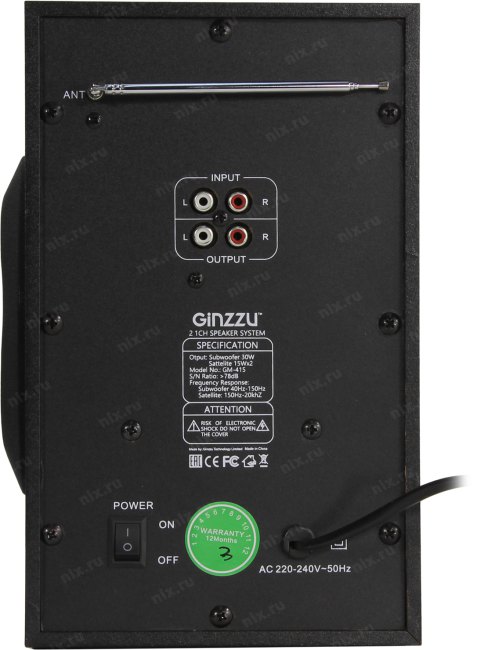 50 ватт (RMS), 30 Вт - сабвуфер, 2x10 Вт - сателиты