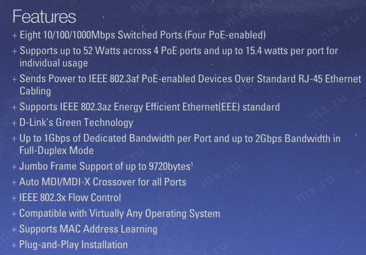 8 портов 10/100/1000 Мбит/сек, 4 из них PoE PSE