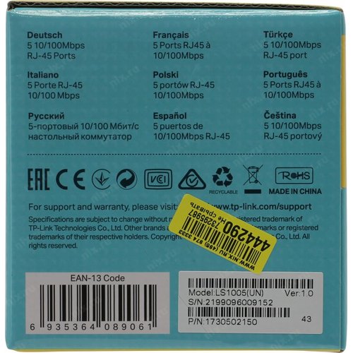 5 портов 10/100 Мбит/сек